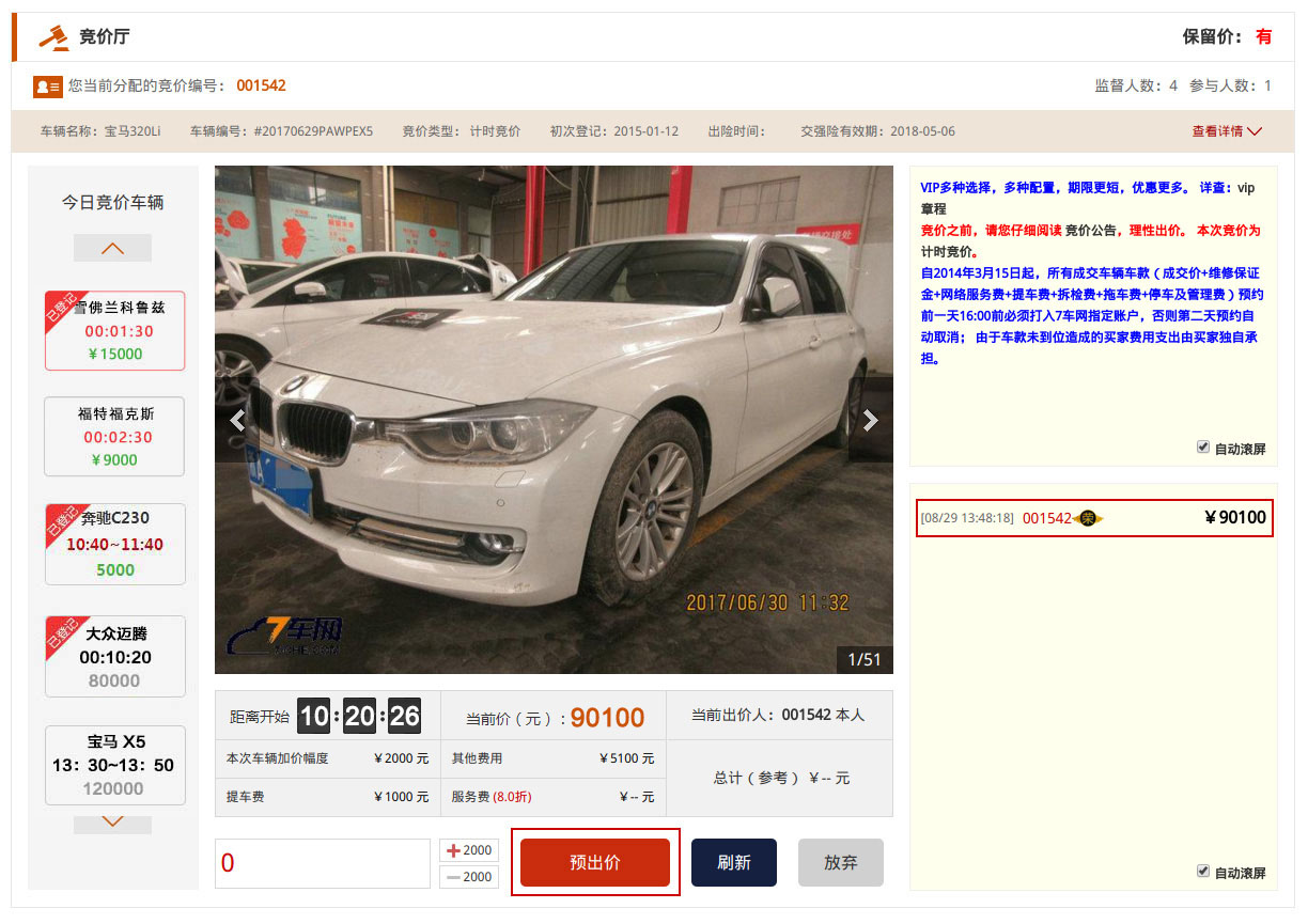 1)选定参与竞价车型,联系咨询客服,支付足额竞价保证金,或在线支付竞价保证金。